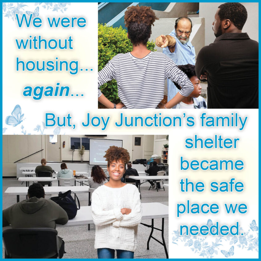 We felt lost. We heard about Joy Junction and decided that it was the best choice for us. We are so thankful for a family shelter because we had nowhere else to go.